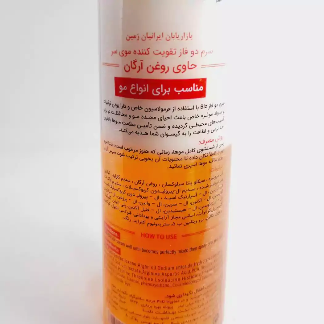 سرم دوفاز آرگان بیز با روغن خالص آرگان، موهای خشک، آسیبدیده و وزدار را به طور فوری نرم و درخشان میکند. این سرم موها را تغذیه کرده و شانهپذیری آسان و درخشندگی طبیعی برای شما ایجاد میکند.
