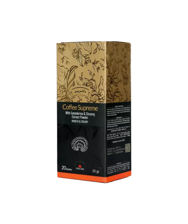 سوپریم یعنی بهترینِ بهترین: دان قهوهٔ ممتاز، عصاره استاندارد گانودرما و ترکیبی که هر فنجان را به تجربهای فراتر از معمول تبدیل میکند. مناسب کسانی که دنبال طعم برجسته، تعادل و کیفیت درجهیک هستند.